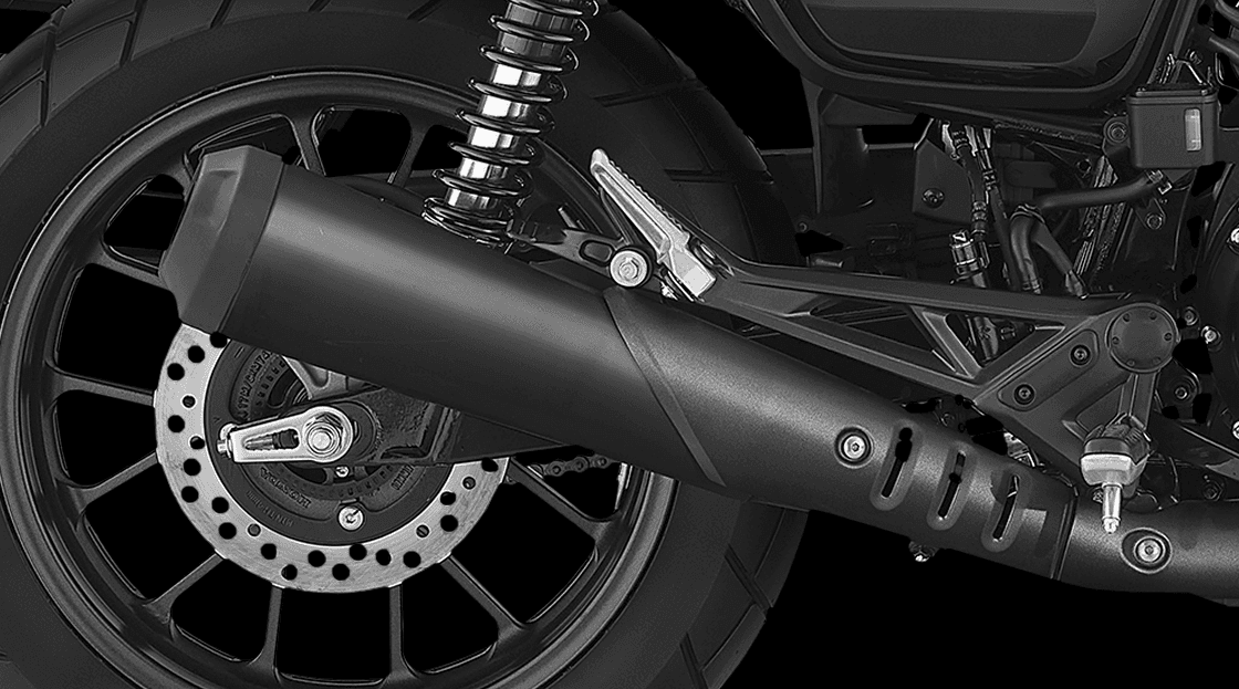 Roar the roads. The exhaust system carries a large tailpipe optimised with the muffler capacity, producing a bold, low-pitched sound. Also, the single chamber structure gives sharpness to the sound of the exhaust.
